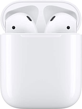 Apple AirPods (2nd generation) wireless earbuds with Lightning charging case. Over 24 hours of battery life and easy installation. iPhone Bluetooth Headset