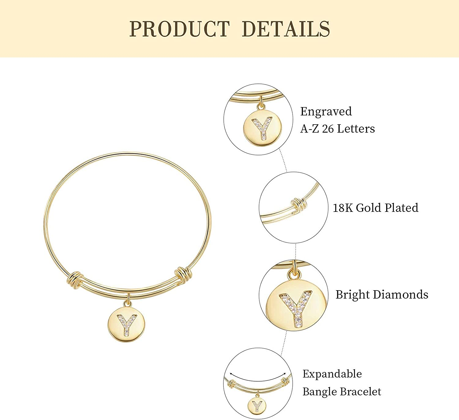 BEOSTAR Initial Charm Bracelet, Engraved Initial Charm Bracelet 18K Gold Plated Bracelet Initial Initial Bracelet Jewelry for Women Teen Girls