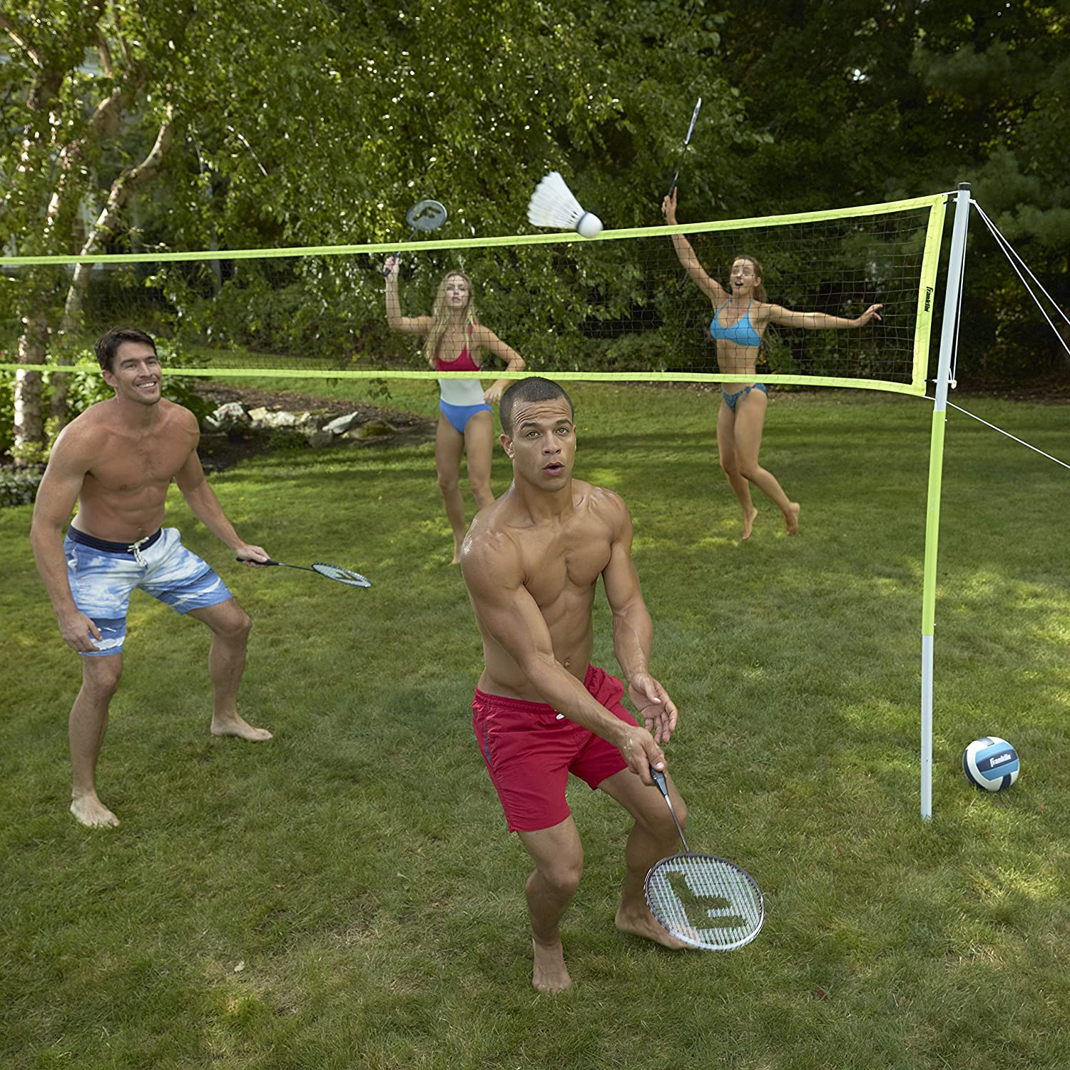 Franklin Sports Volleyball and Badminton Combo Set - Portable Volleyball and Badminton Net with Ball, Racquets and Birdies - All Inclusive Set