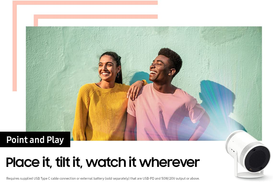 • EXTERNAL BATTERY COMPATIBLE: Now the big screen experience is as mobile as you are; Just grab The Freestyle with an external battery pack and go; With no outlet needed, you’re free to watch your favorite shows, play games or whatever you want, anywhere you want—indoors or outdoors